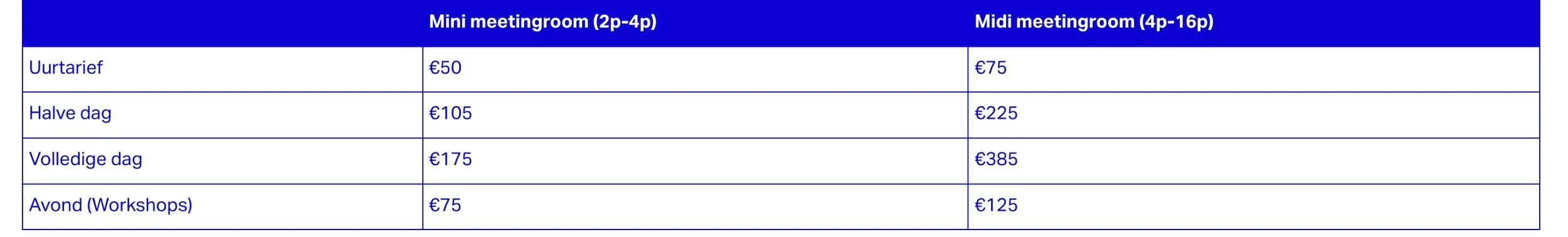 Het boeken van onze vergaderruimte kan enkel via mail naar info@thecolab.be, De factuur wordt verzonden nadat de vergadering heeft plaatsgevonden.